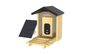 To kompaktowy karmnik z wbudowaną kamerą 5MP CCTV, umożliwiający zdalne obserwowanie ptaków przez aplikację WiFi. Posiada rozpoznawanie ptaków (ponad 11 000 gatunków), podczerwień na noc i panel solarny do ładowania baterii.
